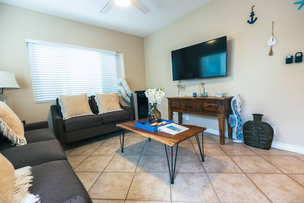 Just 90 meters from the beach, this relaxed lower-level unit is your perfect Mission Beach escape. The living room offers two comfy couches and a smart TV—great for movie nights or unwinding after a day in the sun. The fully equipped kitchen and dining area make at-home meals easy and convenient. The home features two bedrooms: one with a queen bed and closet, and another with two queen beds and a spacious walk-in closet—ideal for families or groups. Enjoy the fresh ocean breeze on the outdoor patio with a table and BBQ—perfect for morning coffee or evening grilling.