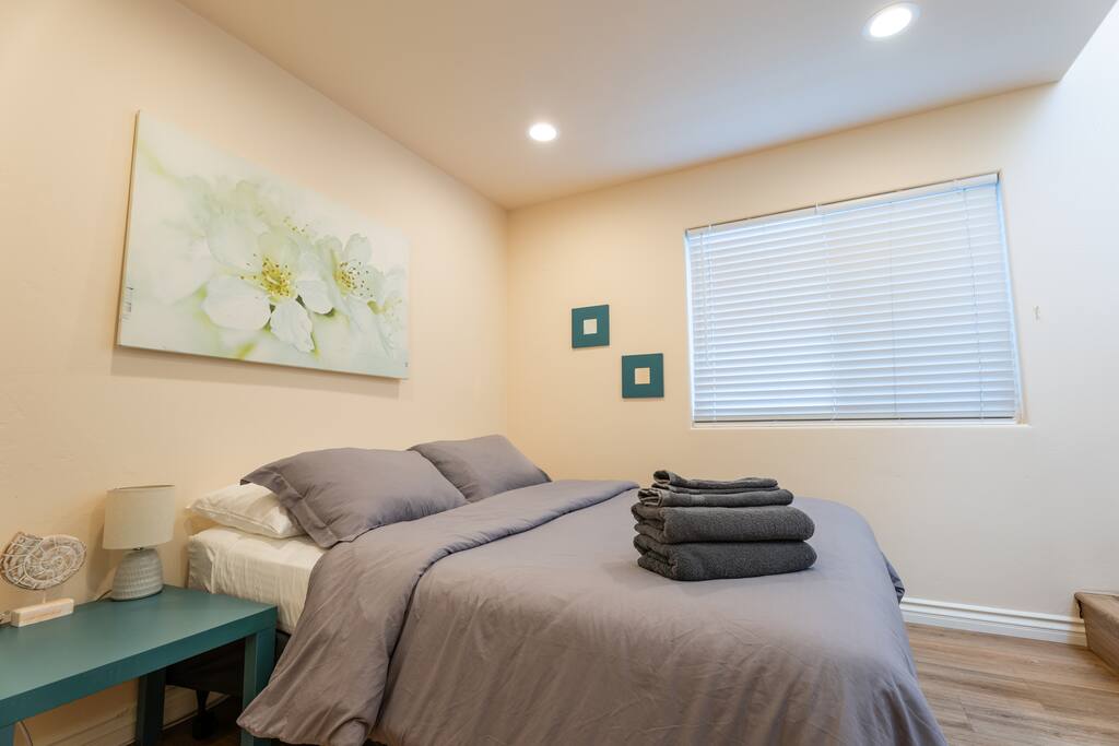 Available outdoor patio with BBQ grill is located at the base of the stairs. Lower level patio directly in front of downstairs unit is restricted as it is reserved for bottom floor tenants. FRONT WALKWAY: All guests staying upstairs and downstairs can use the front gate to access the walkway. Two private parking spaces inside the garage. Please do not park in the carport on the left as it is for downstairs unit only. Also, no parking is allowed right in front of the garage door due to it being in the red zone.